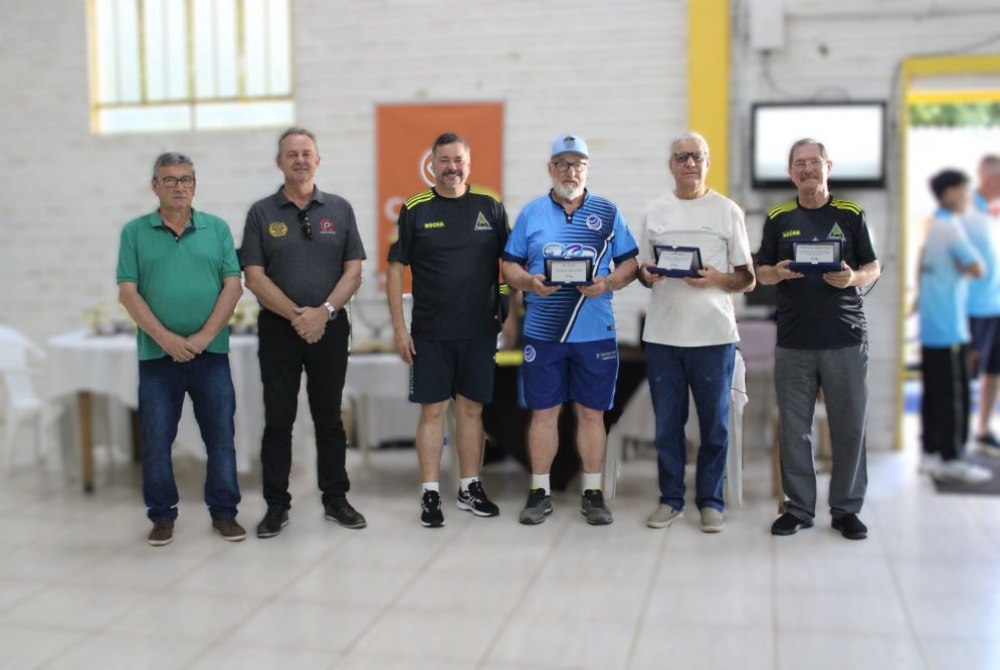 Durante a cerimônia, três bochófilos da Terra da Mãe de Deus foram homenageados com placas comemorativas, em reconhecimento à contribuição e à trajetória dedicada ao esporte: Rui Seidel, Artur Sakis e Antônio César Doleys Silveira.