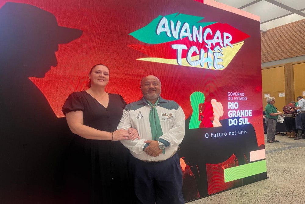 O patrão Evaldo Freitas e a patroa Maiandra Vendruscolo participaram, no dia 17 de dezembro de 2025, em Porto Alegre, da solenidade do Ato de Certificação e Liberação de Recursos do Prêmio Tradicionalista Gaúcho.