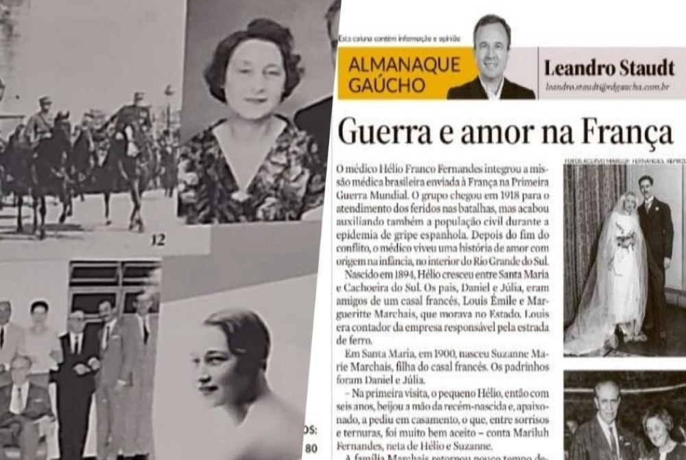 Tupanciretã foi destaque na Coluna Almanaque, assinada pelo jornalista Leandro Staudt, publicada nesta quarta-feira, dia 14, no jornal Zero Hora (GZH). Com o título “Amor e Guerra na França”, o espaço, dedicado a histórias e façanhas reais do povo gaúcho, trouxe a história de amor do médico Dr. Hélio Franco Fernandes e de sua esposa, Suzane Marie Marchais.