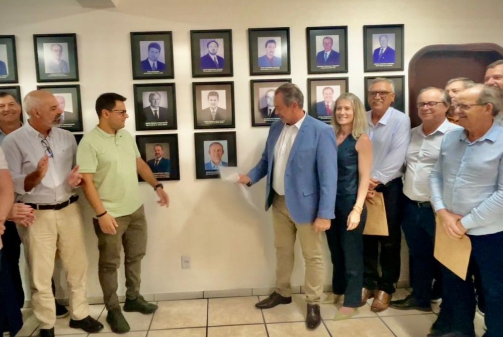 Durante o encontro, também foi realizado o descerramento do quadro de Gustavo Terra na Galeria dos Prefeitos da AMCENTRO, espaço que registra os gestores que presidiram a associação ao longo de sua história.