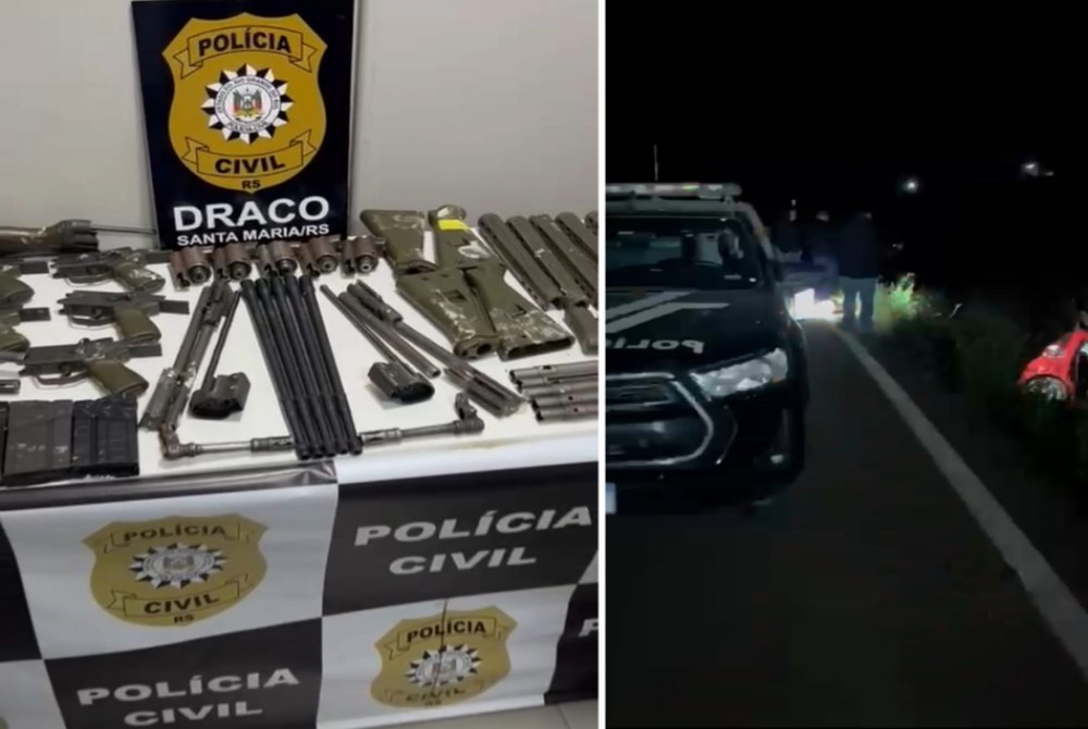 Na noite desta quarta-feira (08/10/2025) Policiais Civis da DRACO - Delegacia de Repressão às Ações Criminosas Organizadas - de Santa Maria, prenderam, na RSC 392, interior do município de Tupanciretã/RS, um homem de 21 anos de idade, em situação de flagrância pelo crime de porte ilegal de arma de fogo de uso restrito.