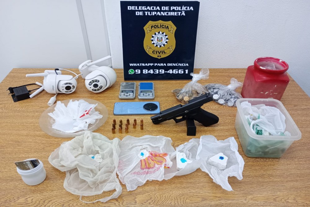 Na manhã desta terça-feira, 04 de novembro de 2025, a Polícia Civil de Tupanciretã prendeu em flagrante um homem de 44 anos pelos crimes de tráfico de drogas e posse ilegal de arma de fogo de uso restrito, durante o cumprimento de mandado de busca e apreensão.