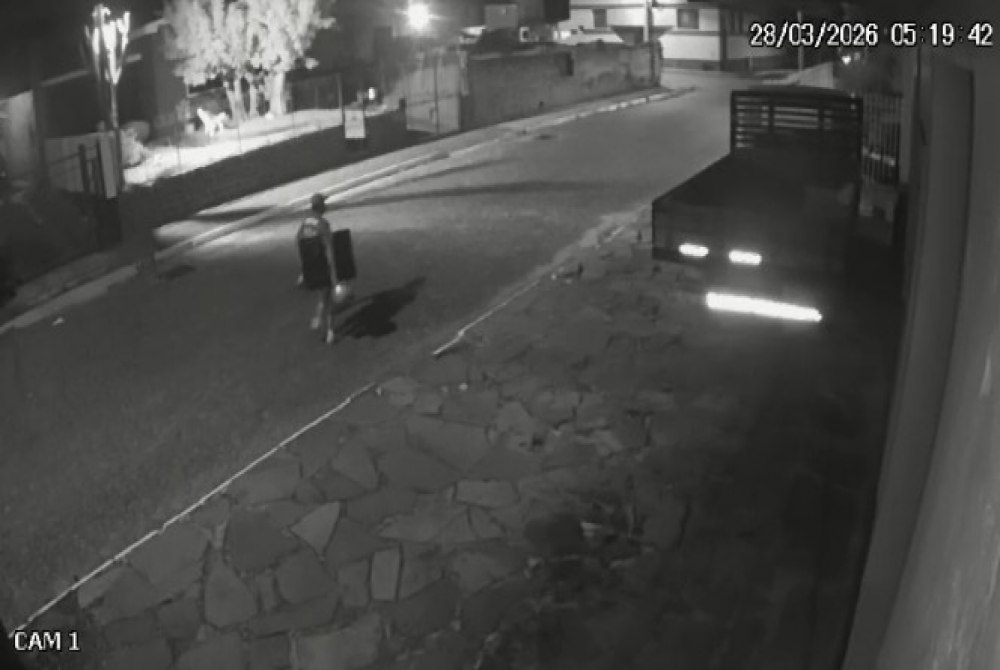 Imagens de videomonitoramento mostram um homem carregando um aparelho televisor por volta das 5h20 da madrugada do dia 28 de março. O Jornal Manchete Digital verificou a procedência do vídeo, confirmando que as imagens correspondem ao crime ocorrido no Clube União Operária.